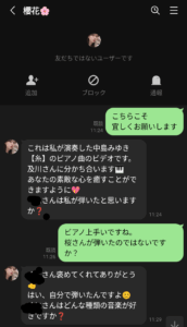 それは日曜日にFacebookのメッセージに届いた挨拶とピアノ演奏の動画から始まりました。営業や詐欺は短期決着なので今日明日で本音が出ると思いやりとりしていました。