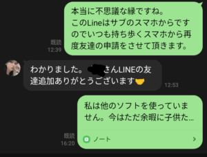 途中で会話をノートにコピーすると何故の問い合わせもありました、そしてメイン機のLineに移動しました