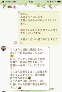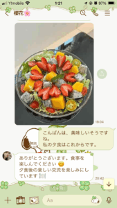 やりとりの内容は会社や仕事の話しや朝のジョギングの風景動画、夕食の写真などでした。夕食写真は1人とありましたが量が多かったのて質問すると近接撮影のためと言われ、翌日からは投稿されなくなりました。