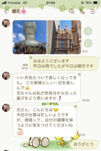 月曜日、火曜日は大変だった身の上話しがあり兄と呼ばせてくれと親近感を強める方向になりました。