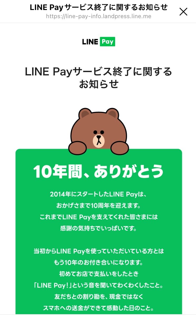 Lineを開いたら「LinePayサービスが2025年に終了」のお知らせ。