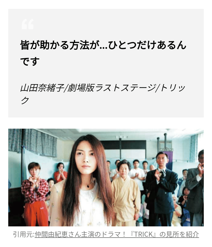 ストーリーやエンディングが気になる方は「トリック劇場版 タネバレ」で検索されると複数表示されると思います。