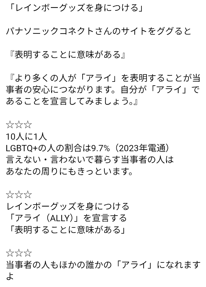 気付いたひとりひとりが大きな事ではなく、身近で出来る小さな行動がやがては少数派の人だけでなく多くの方が住みよい世界に変わっていくと思います。