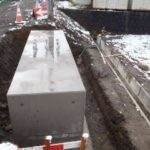 このあと公共工事ならコンクリートの強度が出るまで4週間養生します。強度に問題なけれな型枠を外して土を埋め戻します。