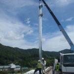 幹線道路の上のアーチ(門)を取り付けるために夜間に通行止めをすることがあります。 その日までに準備を終わらせて最低限の時間通行止めをします。