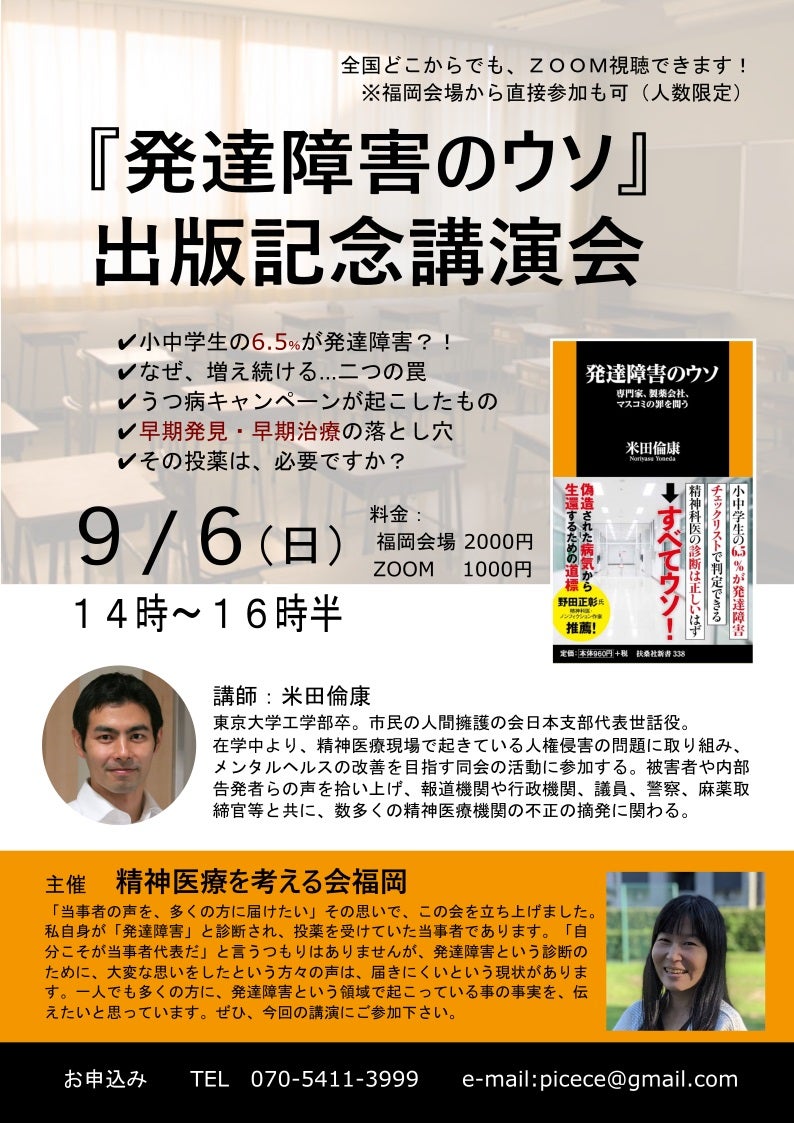 「発達障害の概念」が一致していない。メンタルヘルスには責任を取る人がいない。「発達障害に正しい理解を!」の「正しい」とは?発達障害の検索、診断、治療の問題やデメリットは伝えない。