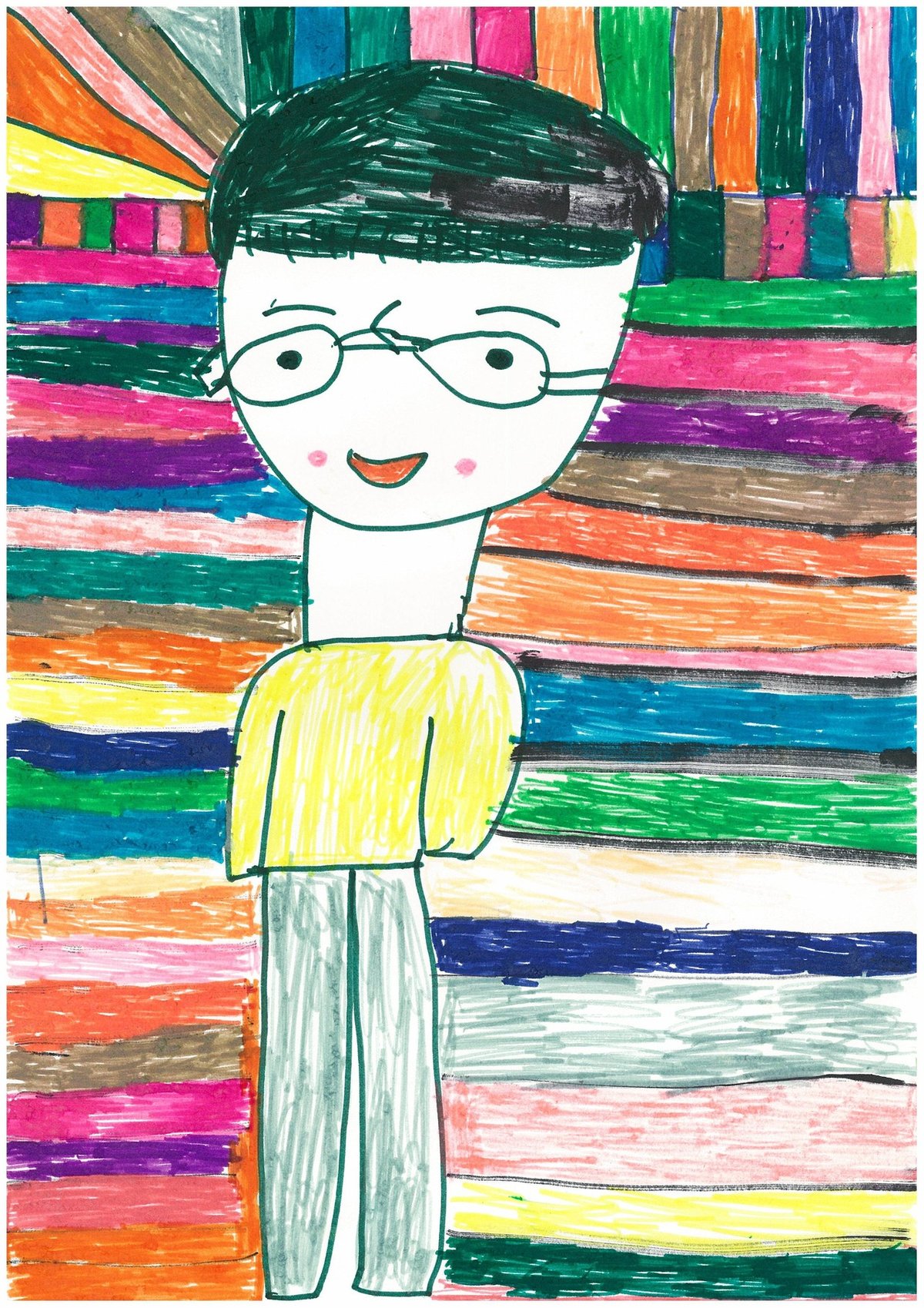 担当ではありませんでしたが顔馴染みの40代の障害を持ってあちらに帰られた女性から頂いた似顔絵で大切にしている作品です。