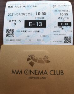 映画チケットは通常1900円ですがメンバー会員で1500円で見れます。今回は12月のお誕生日価格で約半額の1000円で観られる事になってラッキーでした。