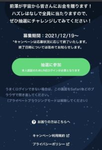 19時半過ぎにLineにつながったので前澤さんと友達登録を済ませて抽選に臨みました。
