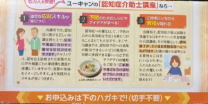 更に認知症の理解を深めたいと思い通信教育で「認知症介助士」の資格取得を考え資料請求をしましたが3万円近くの受講料が必要で潤沢なお金があった過去ならいざ知らず、現時点では厳しい金額なので断念しました。