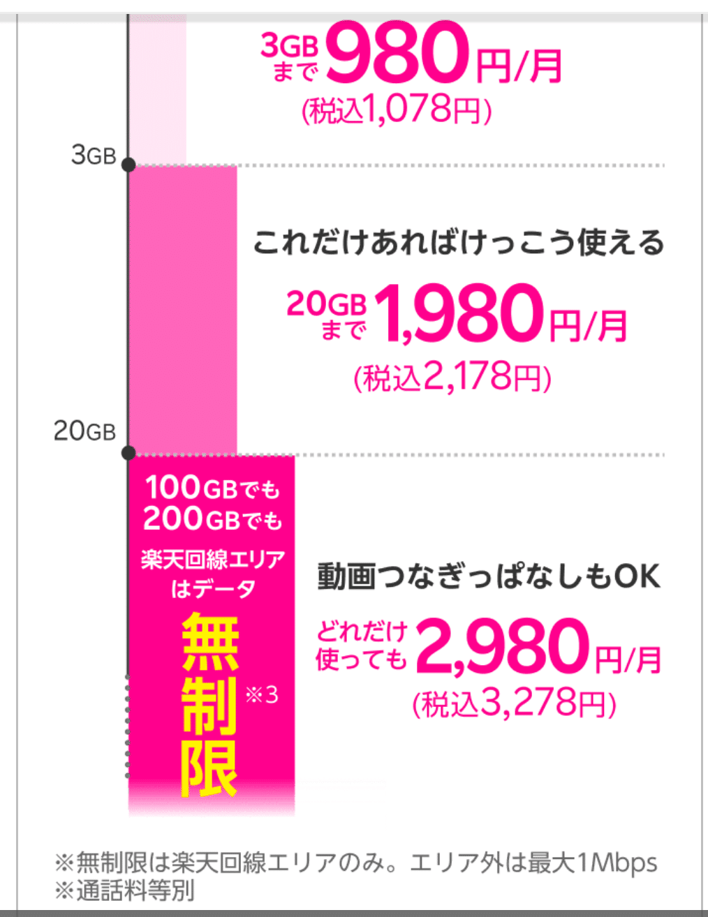 楽天モバイルに乗り換えた理由は原因不明ですが3GBプランを一気に越えた事で楽天モバイルの段階的な料金プランで20GBまでなら現状と同一料金で上手く3GBでいけば1000円安くなり合わせて無料通話に魅力を感じたからです。