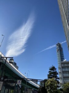 映画館までの道中で雲の中に虹色模様→トップ写真を見ました。