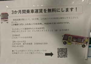 何と大府市ふれあいバスの料金は2023年1月4日から3月31日まで無料です。
