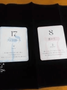 ネガティブカード17「HART:コントロール」?でしたのでサポートカード1+7=8(執着) ポジティブカード8「BODY:豊かさ」 リーデングマニュアルによると『全体の「コントロール」は、「大いなる存在」を信頼し、任せておけば良いのです』参りました(*゚ー゚)ゞ