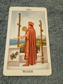 浄化をして最初のカードはワンドの2「理想を、現実するための旅の始まり」でした。