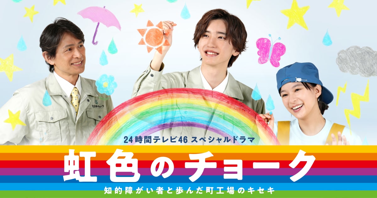24時間テレビ46スペシャルドラマ『虹色のチョーク 知的障がい者と歩んだ町工場のキセキ』公式サイト。道枝駿佑 主演。社員の大半が知的障がい者のチョーク会社が、会社の存続を賭けて、新商品の開発に挑む!!