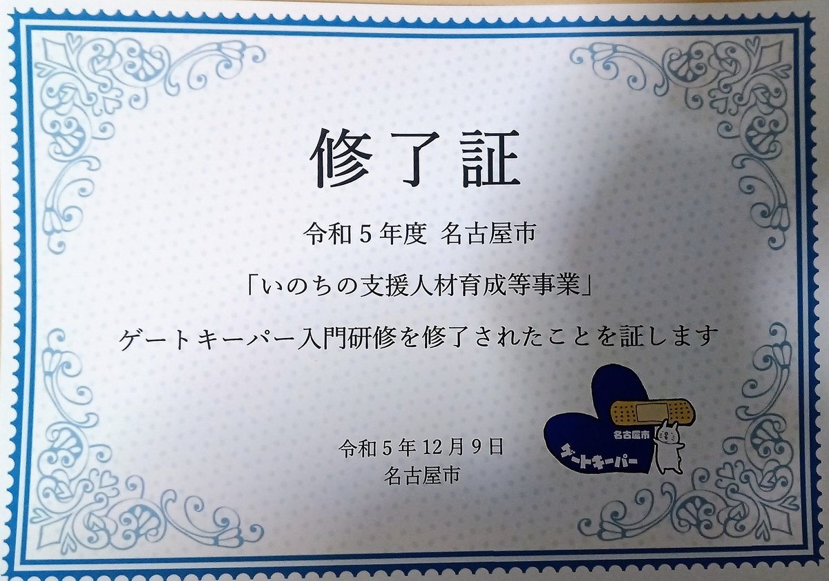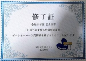 ゲートキーパー3部作その1入門研修終了 ボランティア/福祉 2023.12.09 2026.02.26 この記事は約1分で読めます。 入門研修でロールプレイングがあるとは思っていませんでした。講師もお隣さんもきっかけや勤務先が障害者関係のシンクロには驚きました。専門家としてではなく一般市民としての関わるには自分の在り方の大いなるヒントになりました。 ゲートキーパー全3回